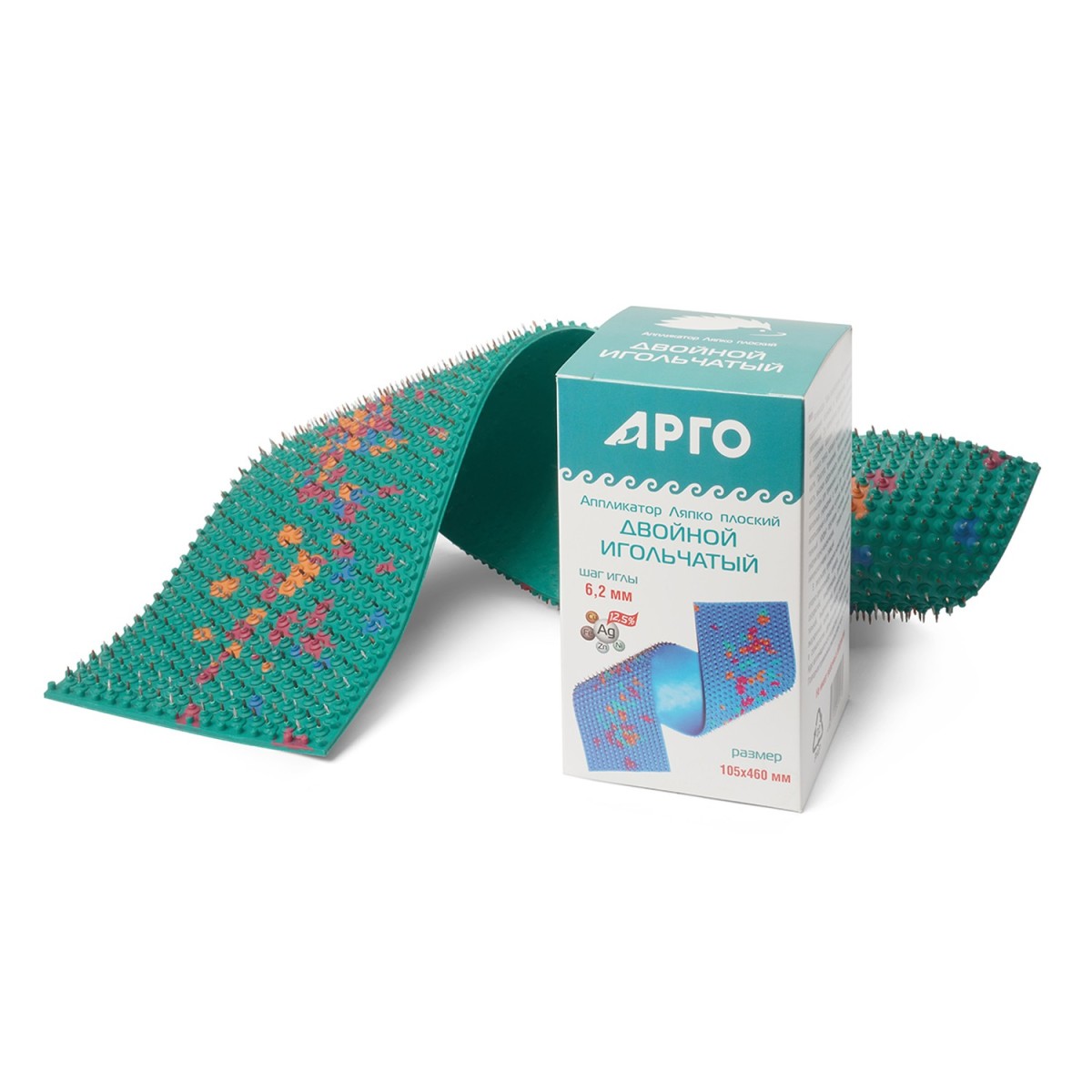 Аппликатор представляет собой эластичную резиновую пластину c закрепленными на ней иглами из необходимых для организма металлов: цинка, меди, железа, никеля и серебра.