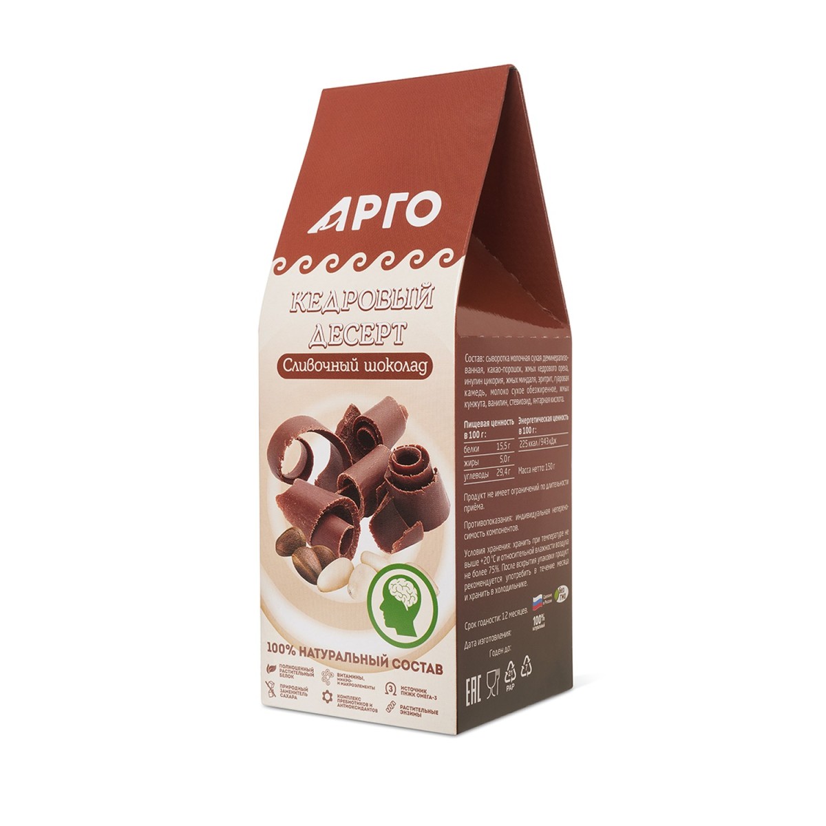 Десерт кедровый Сливочный шоколад, 150 г