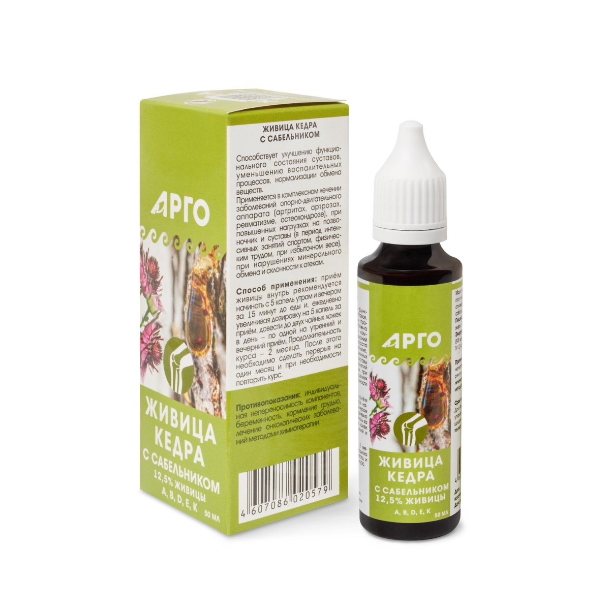 Объединяет в себе оздоровительное действие живицы кедра и экстракта сабельника, способствует улучшению функционального состояния суставов, уменьшению воспалительных процессов, нормализации обмена веществ. Оказывает иммуномодулирующее, антиоксидантное, противовоспалительное, антиатеросклеротическое действие.