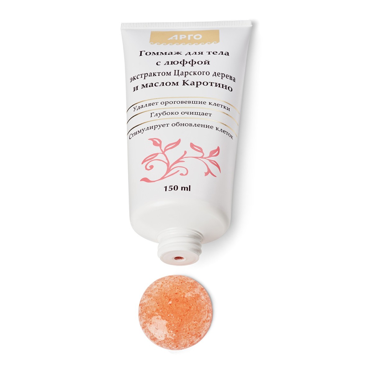 Гоммаж очень деликатно и глубоко очищает кожу тела, стимулирует ее обновление. В качестве скраба использована люффа (волокнистый материал). Экстракт царского дерева способствует омоложению кожи тела, обладает противовоспалительными свойствами, поддерживает энергетический баланс клеток. Масло "Каротино" (витамин Е) тонизирует и придает коже эластичность и сияние.