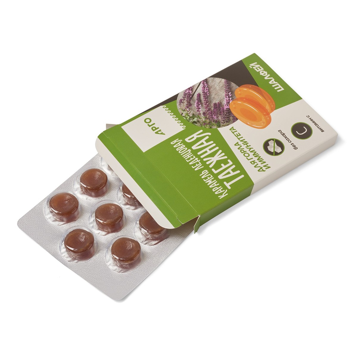 Карамель леденцовая «Таежная» для горла и иммунитета оказывает противовоспалительное действие при боли в горле.