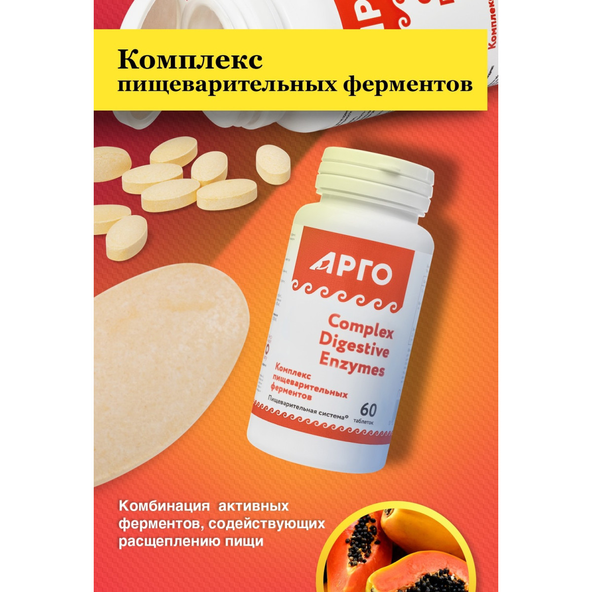 Комплекс пищеварительных ферментов, таблетки, 60 шт.