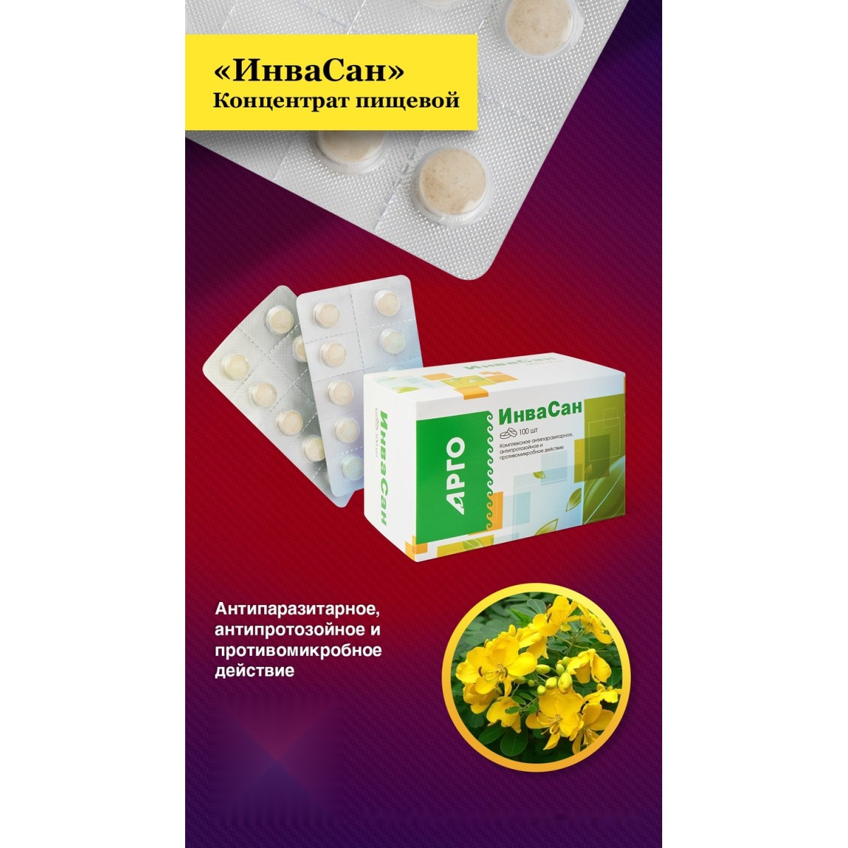 Конфеты таблетированные с растительными экстрактами ИнваСан воздействуют как на плоских, так и на круглых гельминтов, обеспечивают их эффективное удаление из всех отделов желудочно-кишечного тракта, в том числе, желчного пузыря и желчевыводящих путей, стимулируют местный иммунитет, восстанавливают пищеварение и функцию печени.
