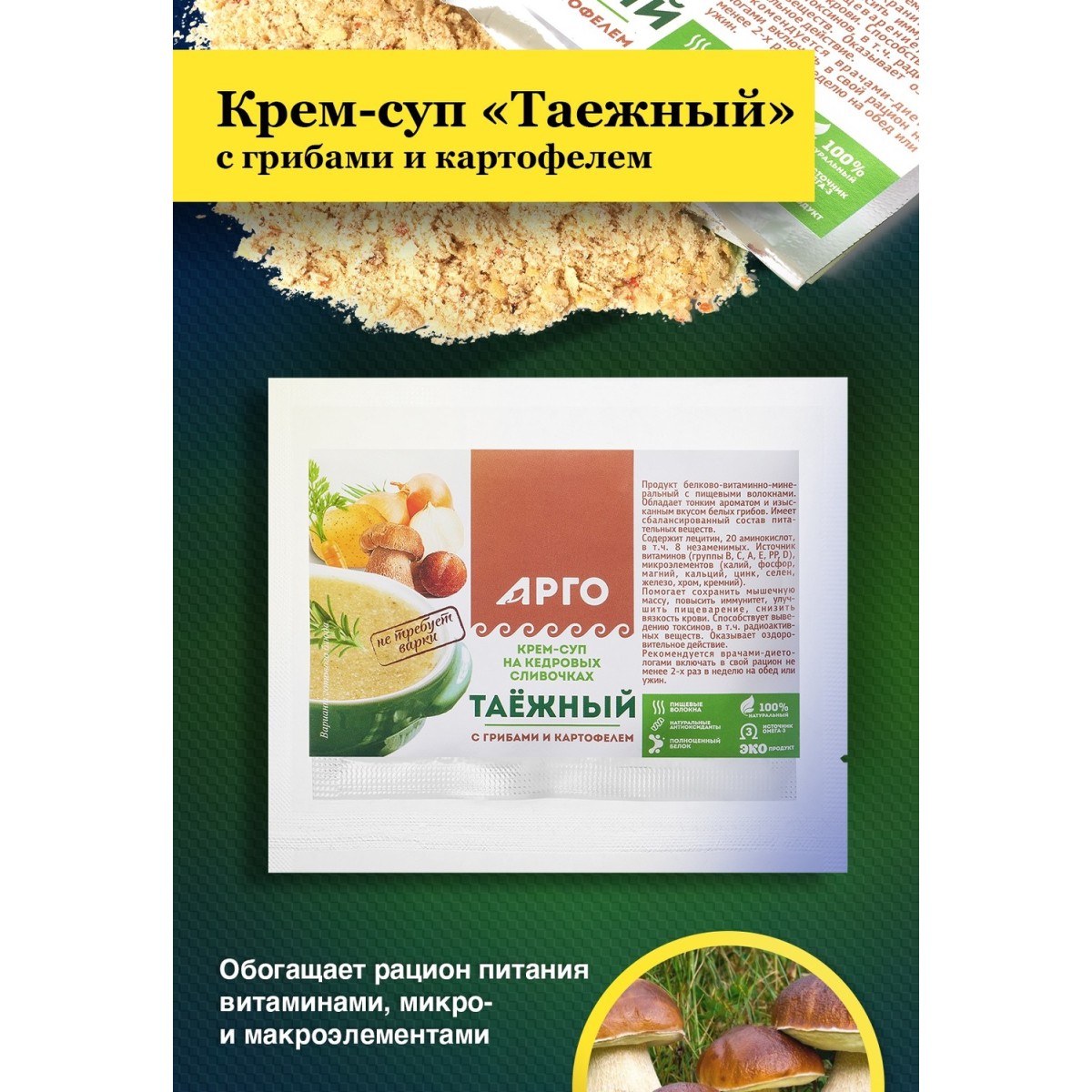 Витамины А, Е, К и группы В, а также минералы кальций, калий, фосфор и магний, цинк, селен и хром в составе крем-супа повышают энергетический тонус, обеспечивают хорошее самочувствие, помогают организму бороться с заболеваниями. Сочетание грибов, картофеля, моркови, жмыхов кунжута и кедрового ореха способствует нормализации пищеварения, укрепляет иммунитет, выводит токсические вещества и избыток холестерина. Изысканный вкус с тонким ароматом прекрасно дополняет оздоровительные свойства продукта.