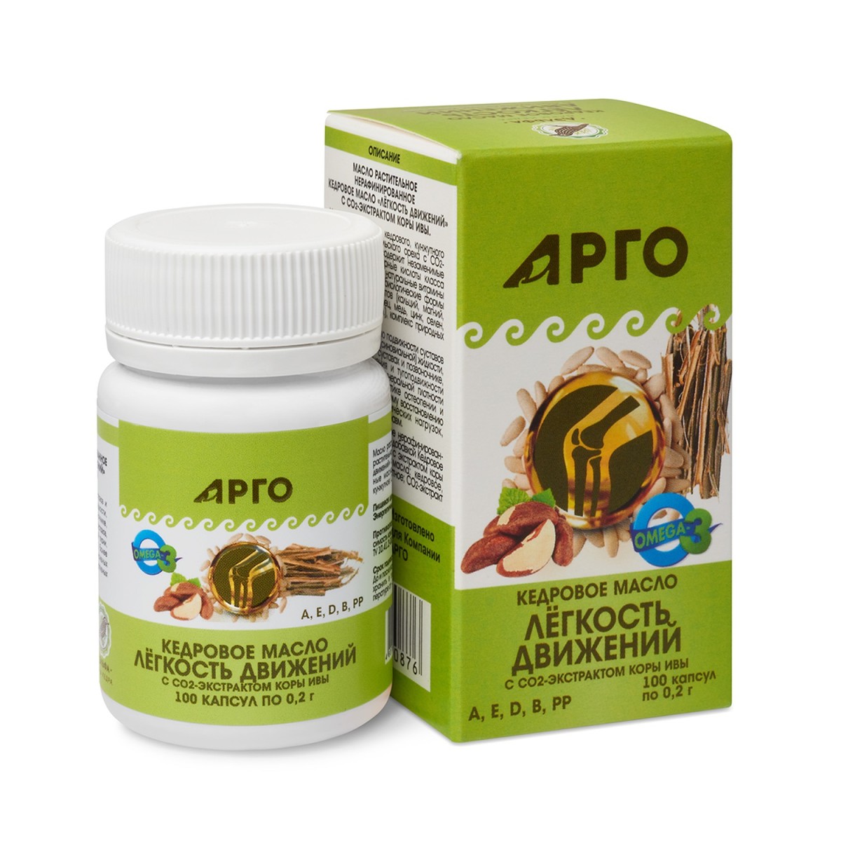 Масло кедровое Легкость движений с экстрактом коры ивы, капсулы, 100 шт.