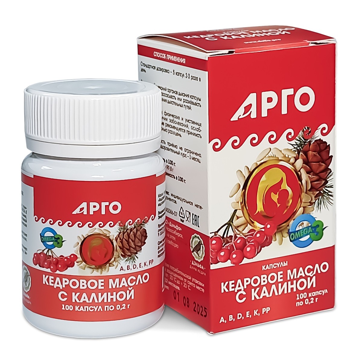 Масло кедровое с калиной (с витамином Е), капсулы, 100 шт.