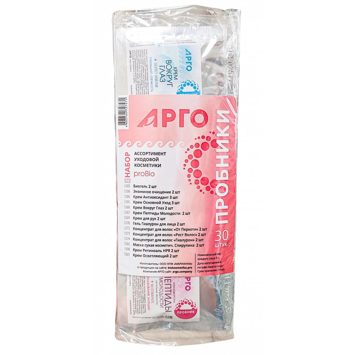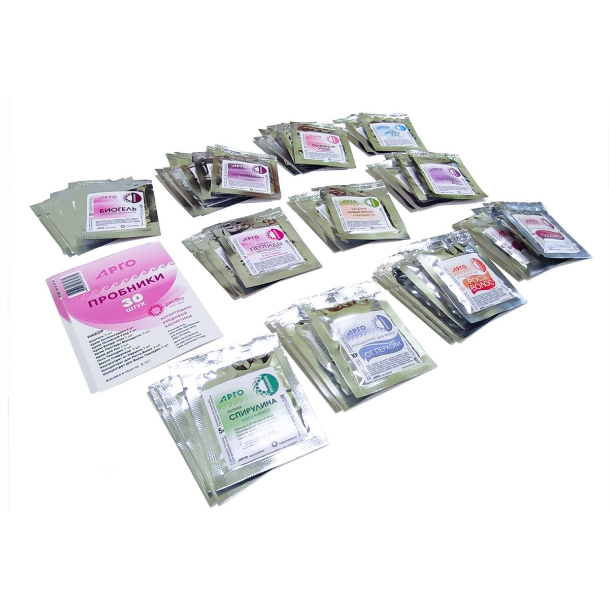 30 шт. пробников в полиэтиленовом пакете с этикеткой.