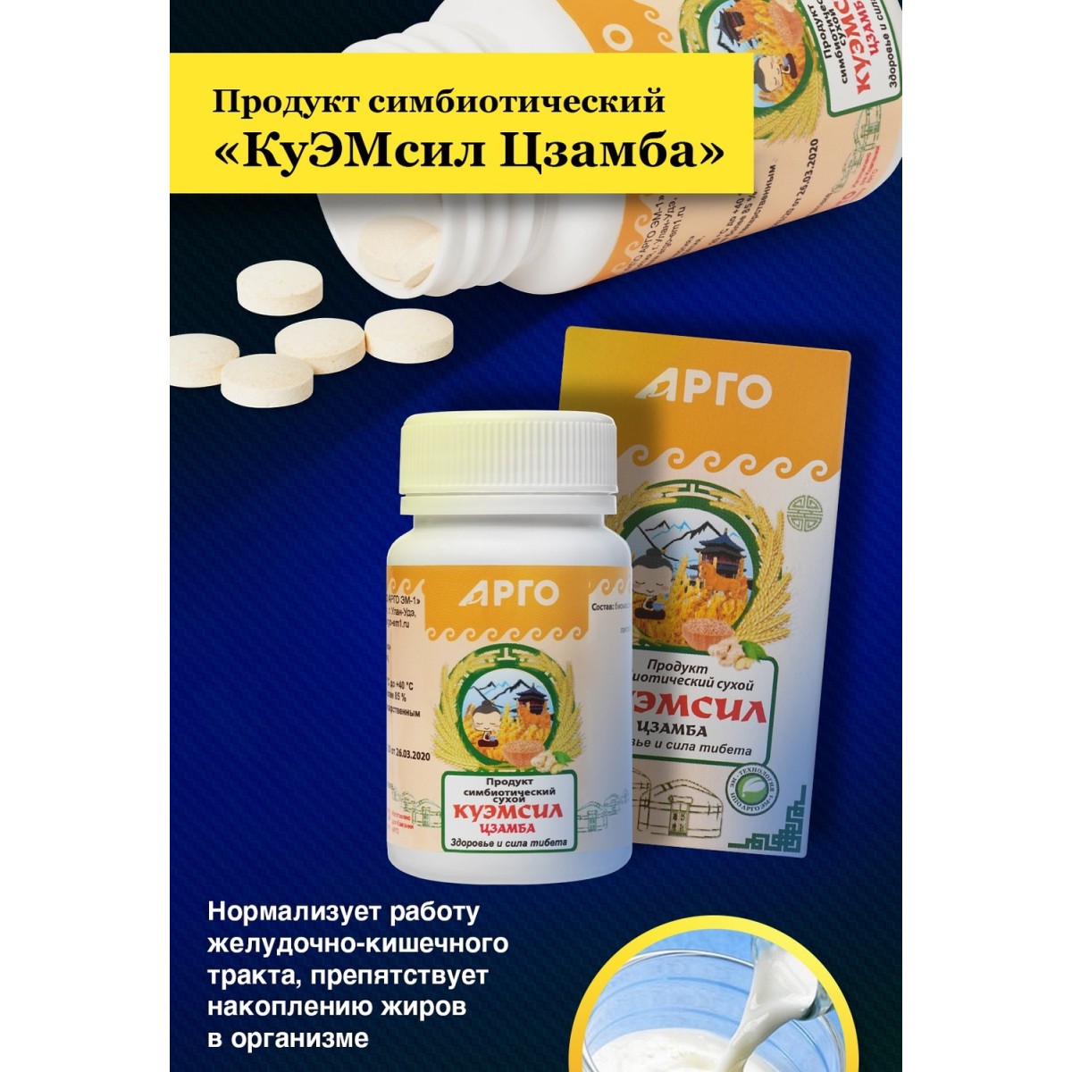 Продукт симбиотический КуЭМсил Цзамба, таблетки, 60 шт.