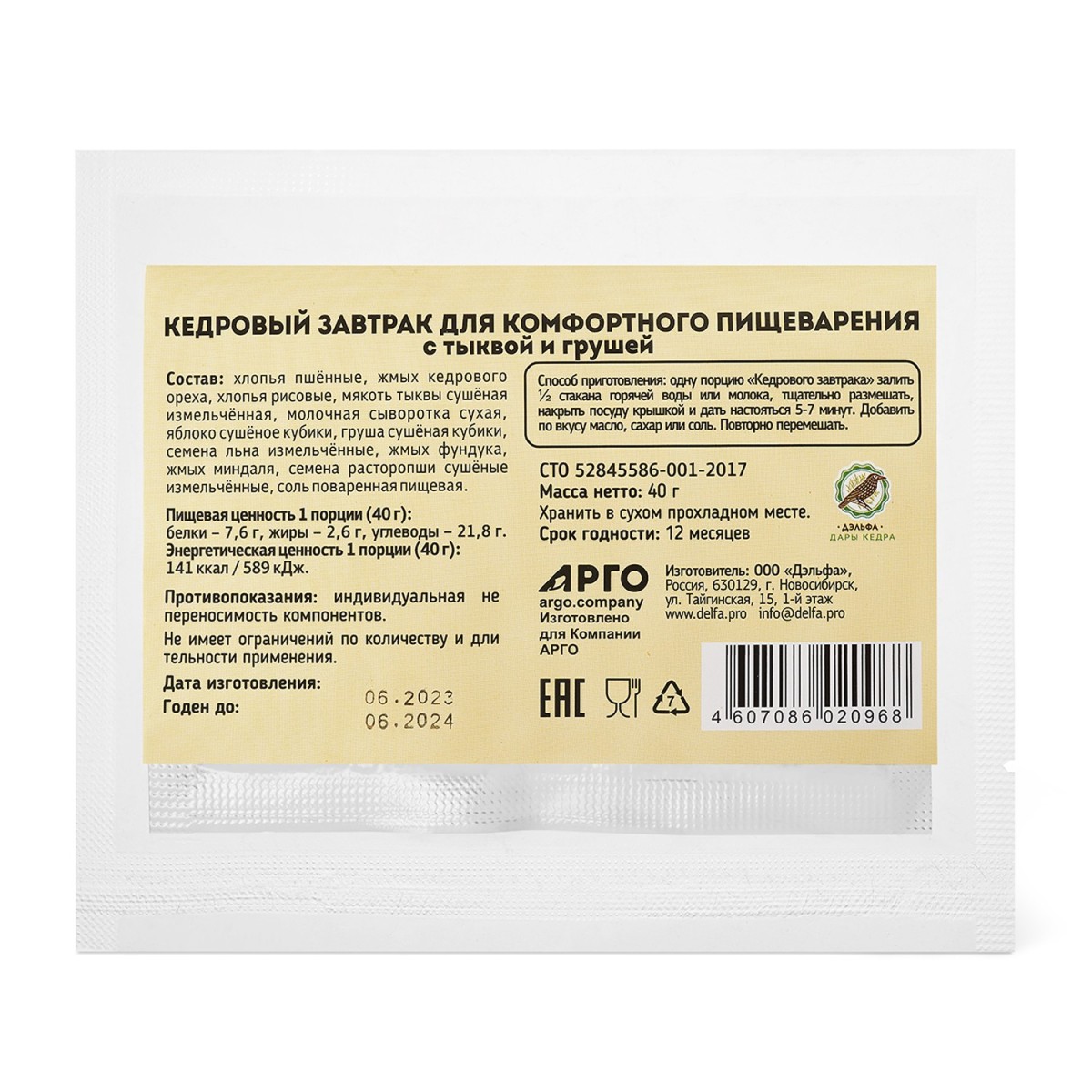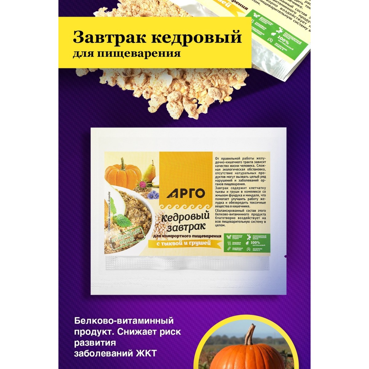 Завтрак кедровый для комфортного пищеварения с тыквой и грушей, 40 г