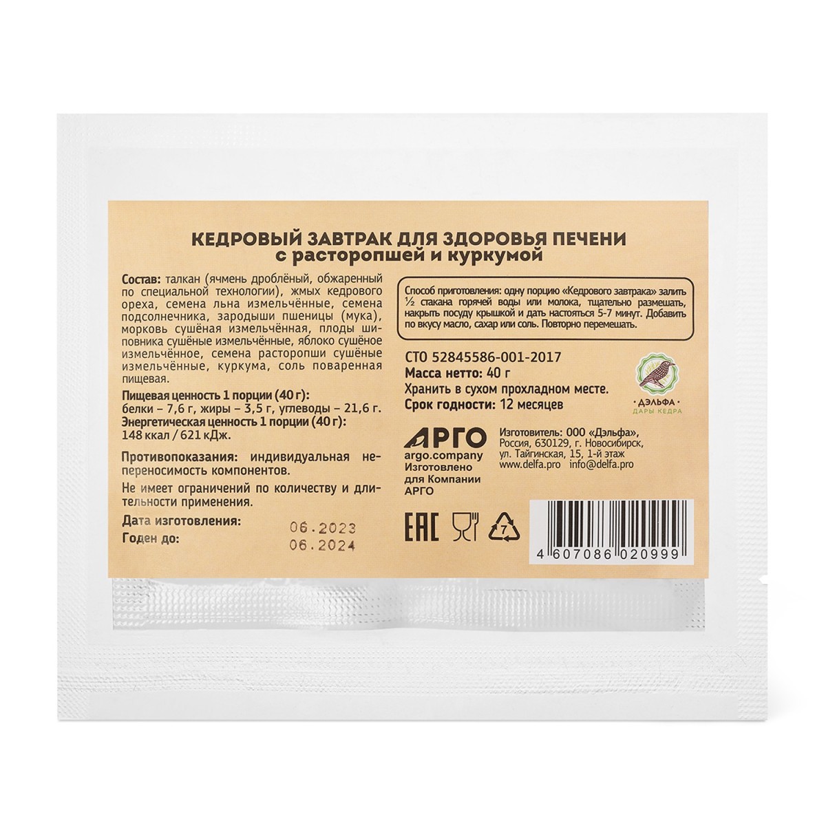 Завтрак кедровый для печени с расторопшей и куркумой, 40 г